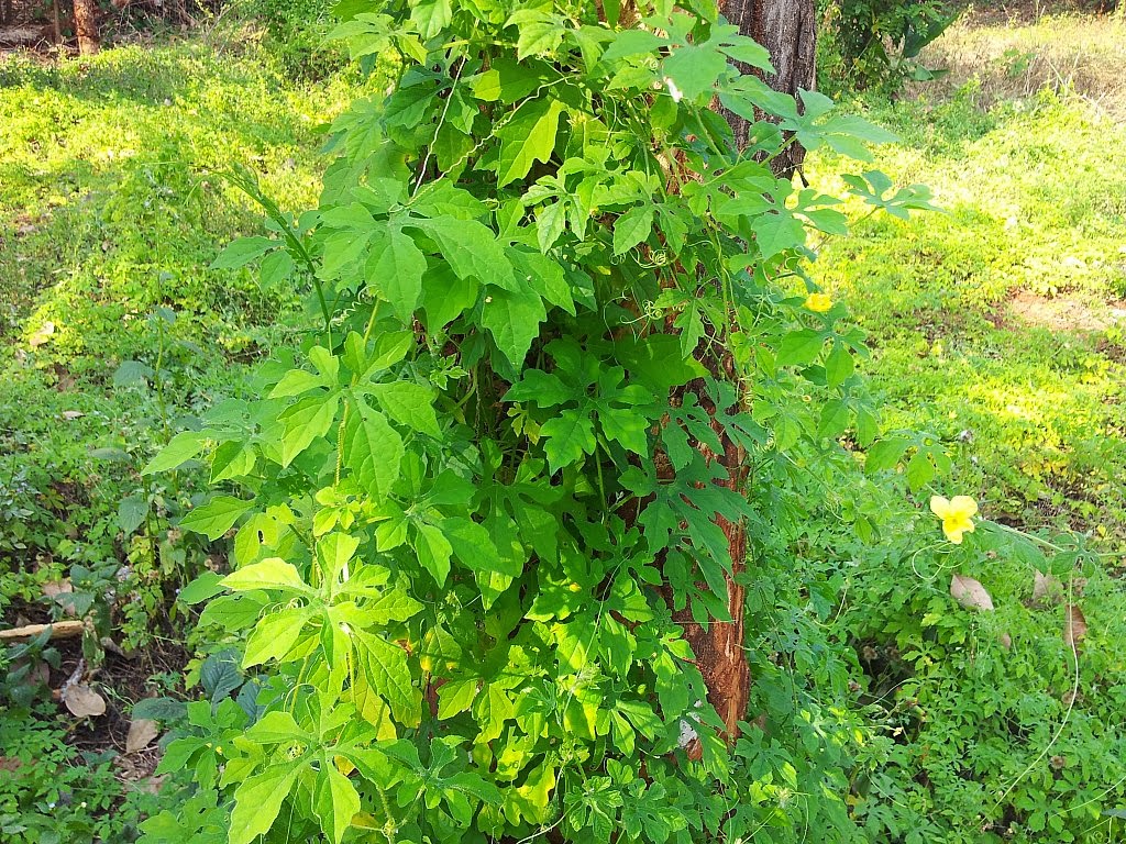 -Lá: Lá mọc so le, dài 5-10 cm, rộng 4-8cm, phiến lá chia làm 5-7 thuỳ, hình trứng, mép khía răng. Mặt dưới lá mầu nhạt hơn mặt trên, Gân lá có lông ngắn.